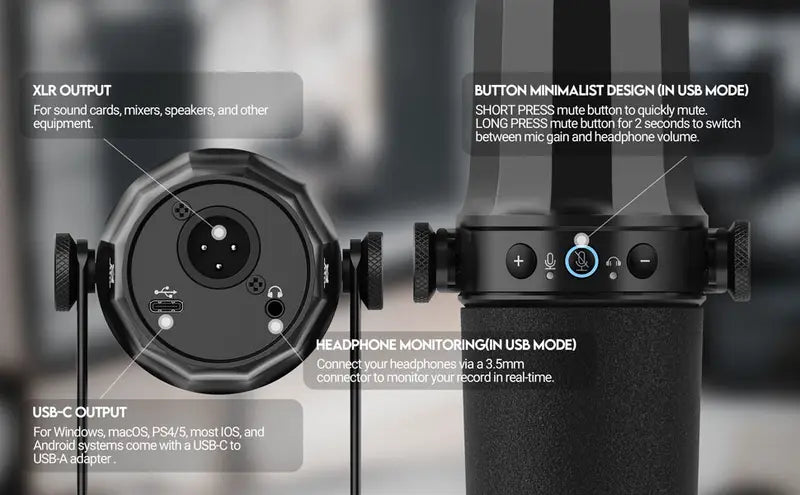 šļø USB & XLR dual connection ā plug-and-play or studio setup