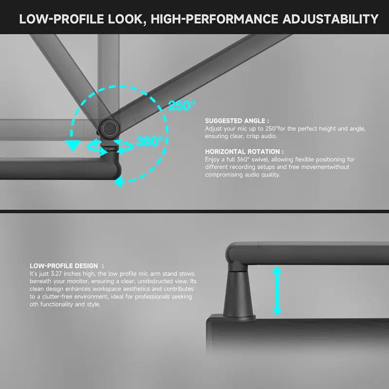Heavy-Duty Low-Arm Rotating Microphone Stand-Black